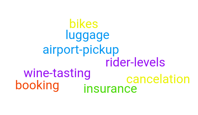 Nearly everything is included except for your flights, from the airport pick-up, comfortable accommodation at a private villa with pool, the cycles, and the guided tours. Please refer to the particular tour for details. Depending on the tour, meals will be included, either group prepared from a well stocked fridge, or with catering onsite. Wine will usually be provided on the table but any extra alcoholic drinks would be at your cost. Additionally to that, the wine-tasting events are included as well as other events such as a 2-hour wine-tasting course by an expert and cultural visits and events which depend on the location and can be seasonal. Transport of baggage when required and transport to certain events by minibus will also be included.